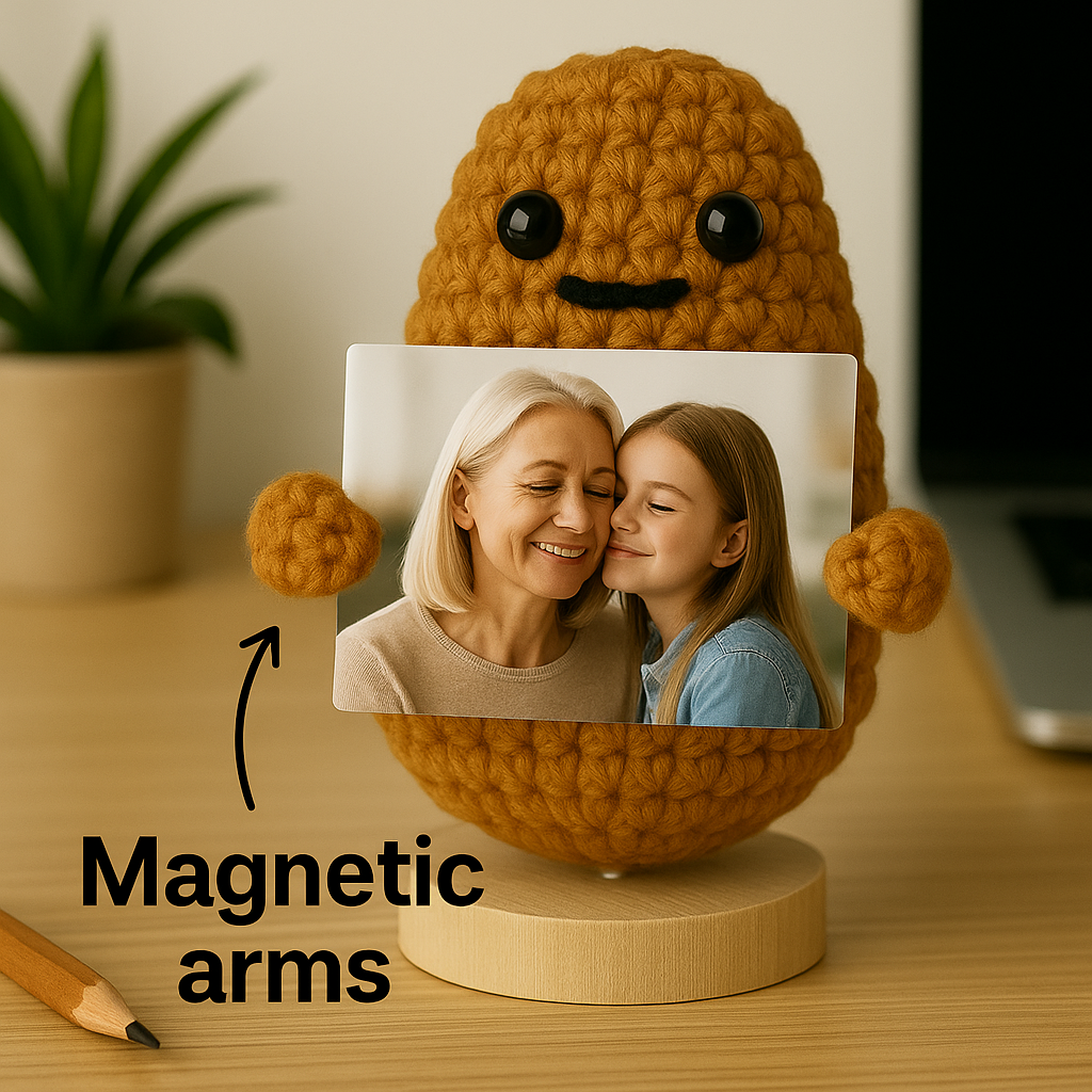 We offer full color customization for both the knitted potato and the engraved aluminum card, making it the perfect product for various niches, events, or branding purposes.